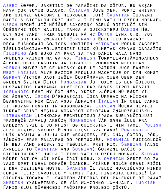 | Azerbaijani in Azerbaijan | Javanese | Sardinian |